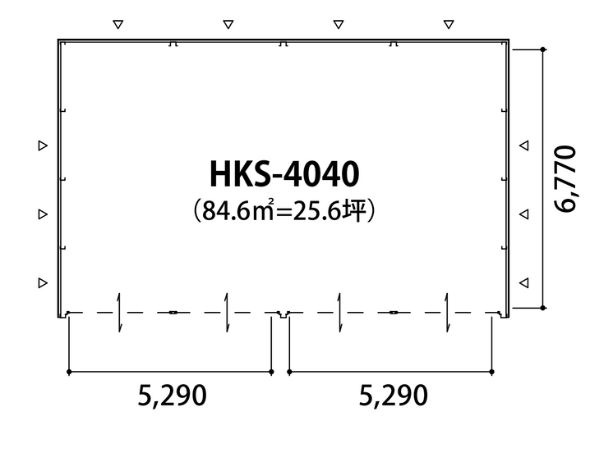 | 間 口 | 間口スパン2,400:7,530/9,930/14,730/17,130 間口スパン3,000:9,330/12,330/15,330/18,330/21,330 |